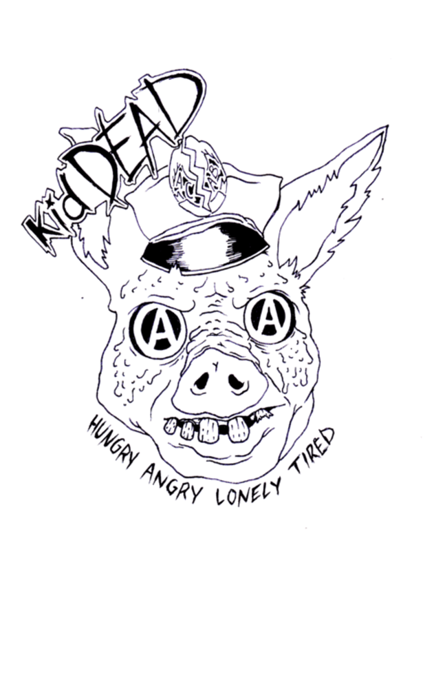 The design is white on black tees, but I don't have a better picture, sorry. I also have this design in a back patch. If you buy a cd, you get a back patch for free! So, basically you're buying the back patch for $10 and you get a cd for free. But, I can't add anymore products haha.